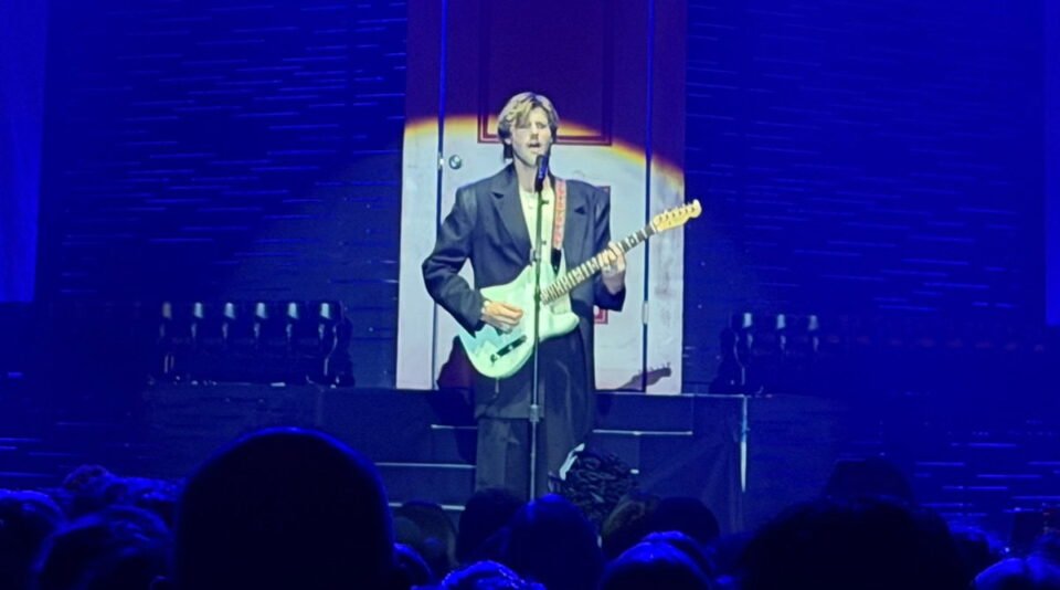 From the moment Ruel burst through a glowing door, which gave full UFO, otherworldly energy—maybe to represent his otherworldly vocals—the tone was set. The recurring bit with the mysterious “hand” reaching out from the door, passing him guitars, a record to sign and even “ice” (which he hilariously rejected with a “nobody wants ice, get that out of here”). This added a playful, theatrical layer and smooth transitions between sections of the set that kept the audience locked in between songs.