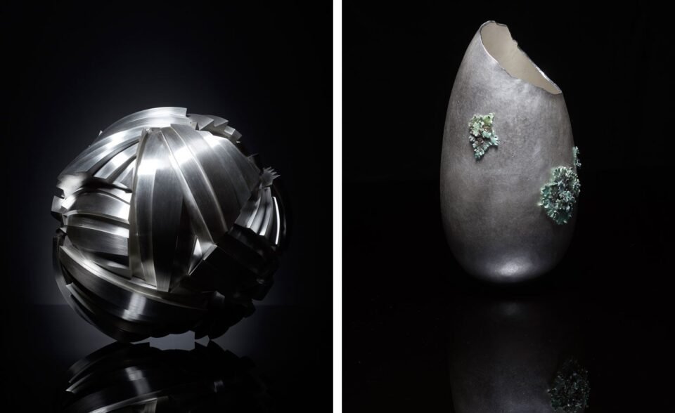 Pictured left: Brushstroke, by Rauni Higson, 2016. Right: Silver Vase With A Mokume Gane Rim, by Alistair McCallum, 2015