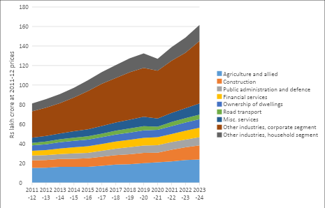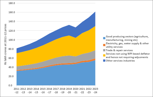 Figure 3. Gross value added at 2011-12 prices, five segments of the Indian economy