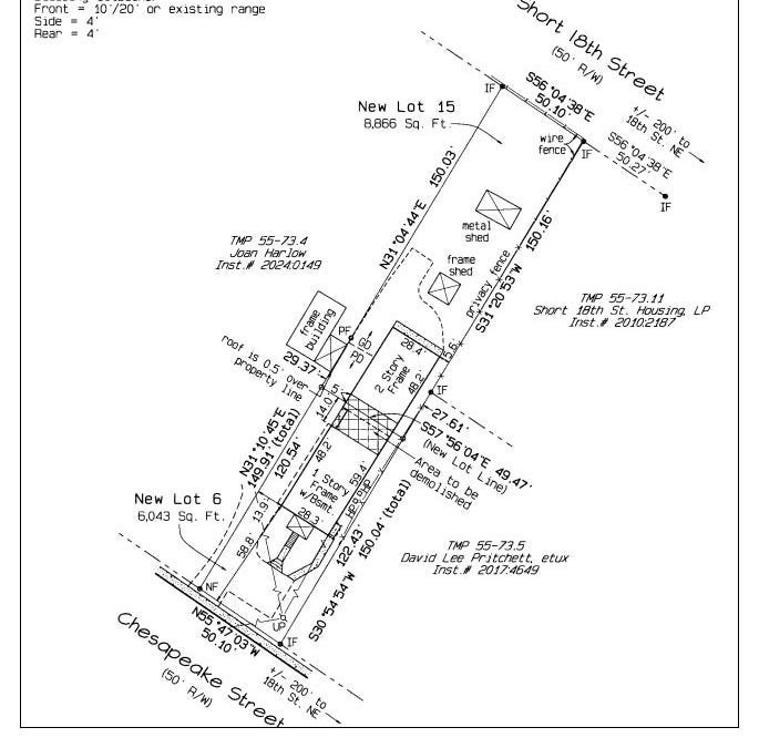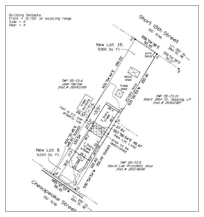 A snapshot of the subdivision of 1411 Chesapeake into two buildable lots (Credit: Residential Surveying Services)