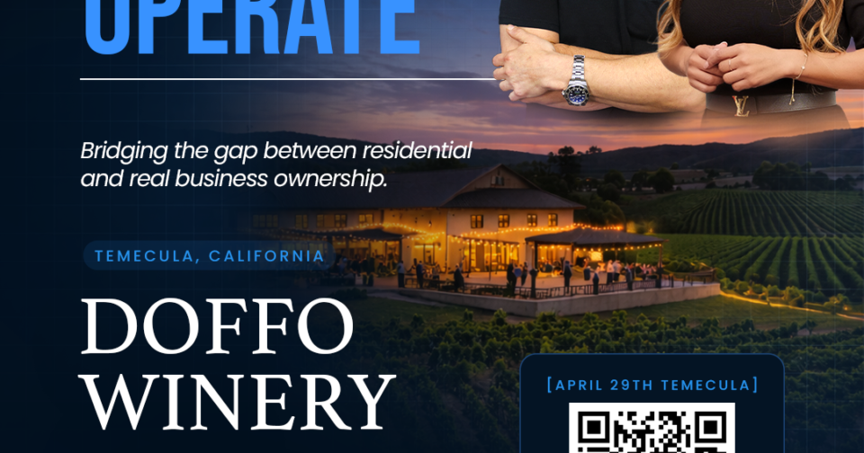 Hosted at Doffo Winery, this high-impact event will bring together residential real estate agents and small business owners for a focused session on how to integrate commercial real estate into an existing business — without abandoning the foundation that built it.